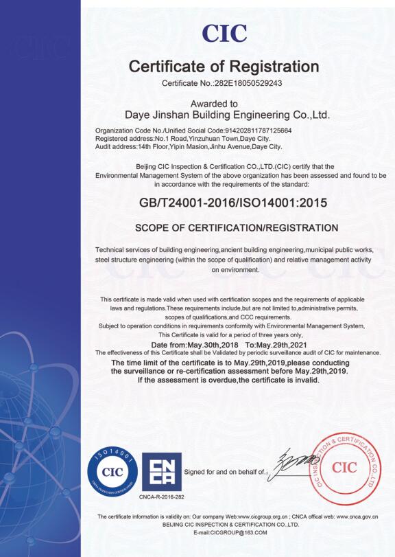 環(huán)境管理體系認(rèn)證證書...